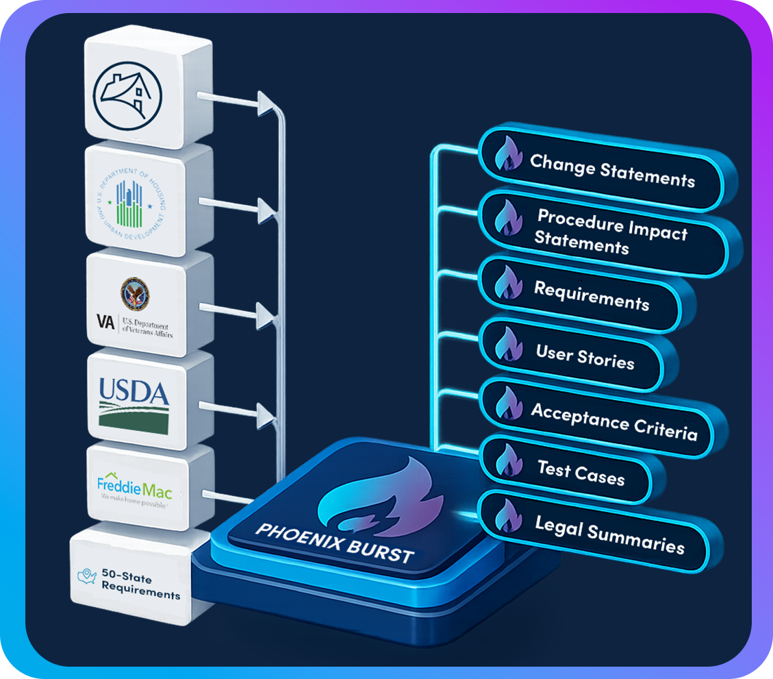 Phoenix Burst is a GenAI-native regulatory change platform for financial institutions. It transforms federal and state regulatory updates into structured, execution-ready artifacts—so teams respond faster, reduce risk, and standardize interpretation.